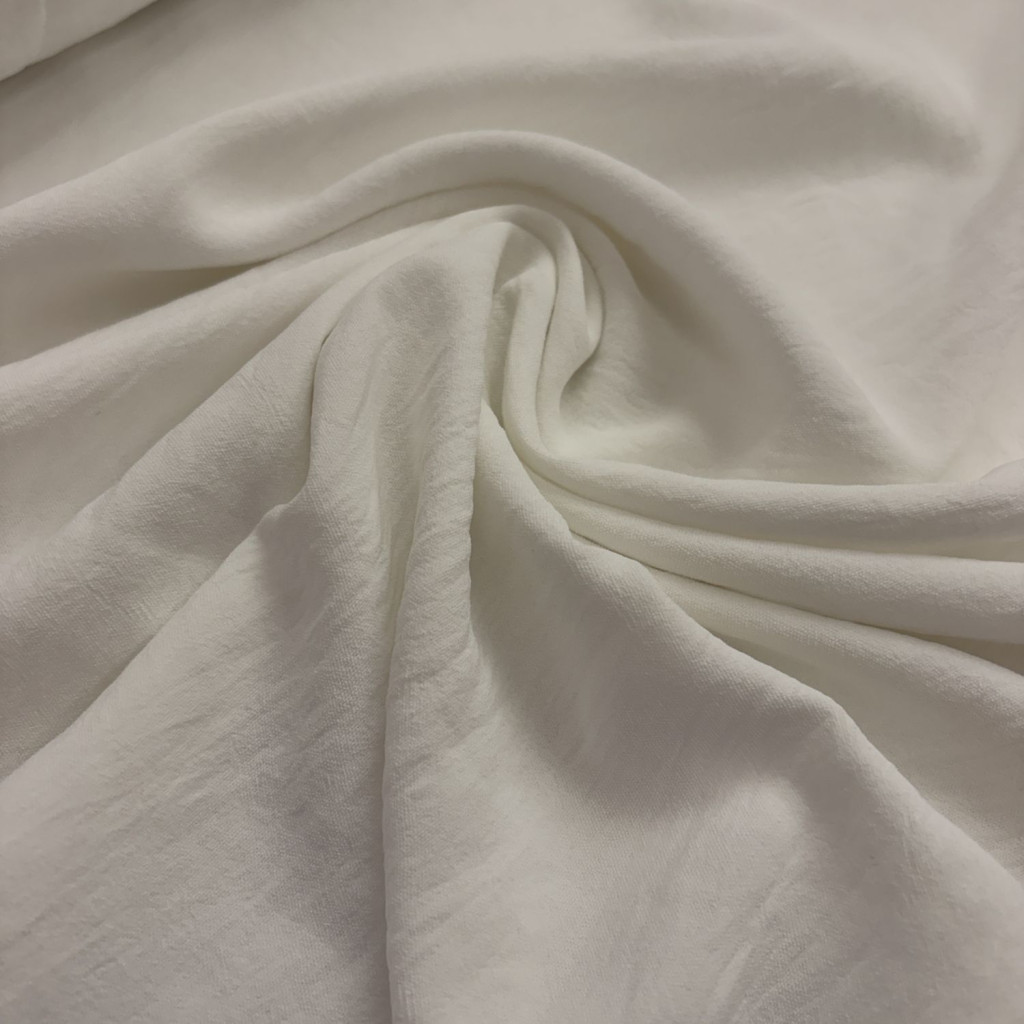 Az Ecrü American crepe anyag könnyed esésű, enyhén rugalmas és elegáns megjelenésű textil, amely ideális ruházati felhasználásra.