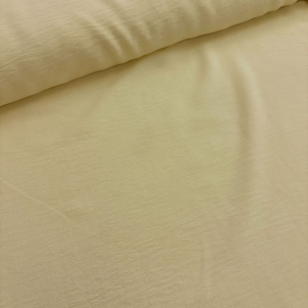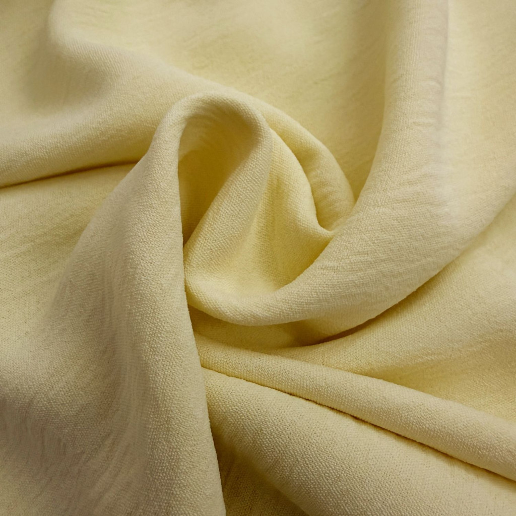 A PASZTELL SÁRGA American crepe anyag könnyed esésű, enyhén rugalmas és elegáns megjelenésű textil, amely ideális ruházati felhasználásra.