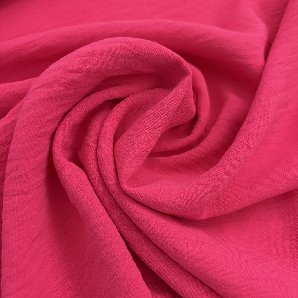 Az Pink American crepe anyag könnyed esésű, enyhén rugalmas és elegáns megjelenésű textil, amely ideális ruházati felhasználásra.