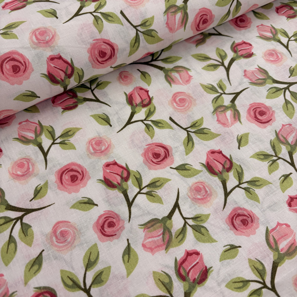 A rózsaszín rózsás pamutvászon tökéletes választás, ha egy finom, nőies és elegáns mintájú anyagot keresel.