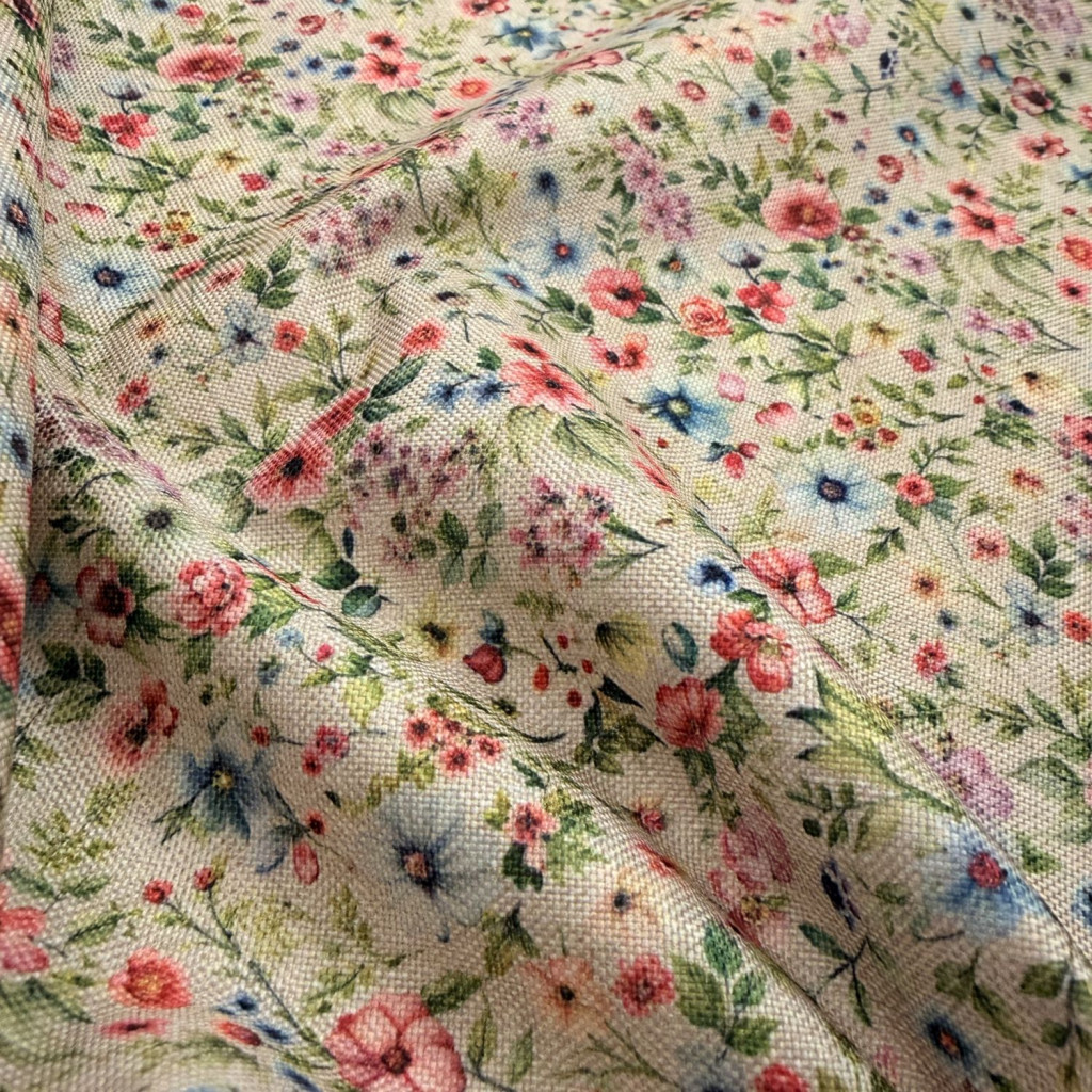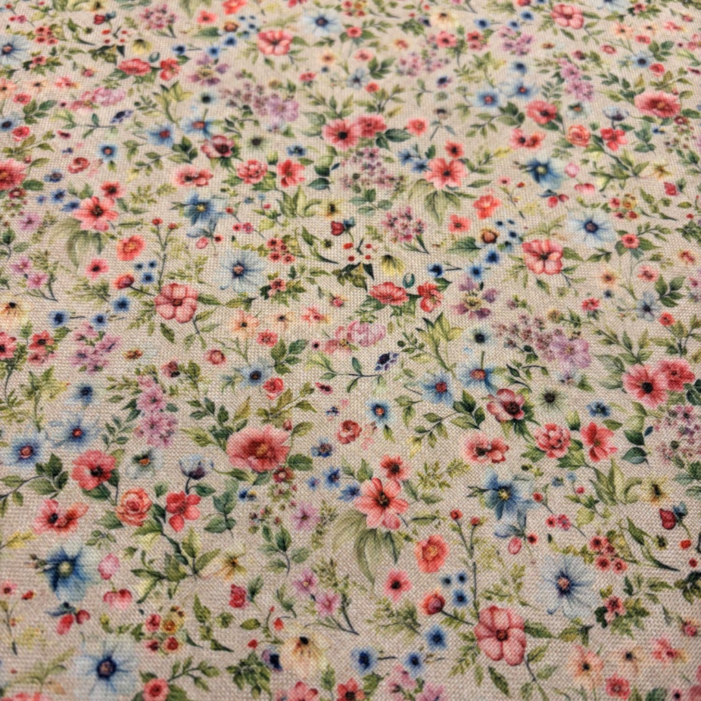 A virágos mintázat élettel, frissességgel és természetes hangulattal tölti meg az anyagot, így tökéletes választás szezonális projektekhez.