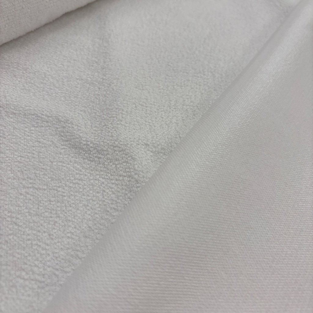 Kent egyfalas frottír ágyvédő anyag – praktikus és vízhatlan megoldás matrac védelmére! Egyik oldala puha frottír, másik oldala vízzáró poliészter réteg. 205 cm szélességű, jól varrható textil matracvédő huzatokhoz, ágytakarókhoz vagy vízhatlan lepedőkhöz.