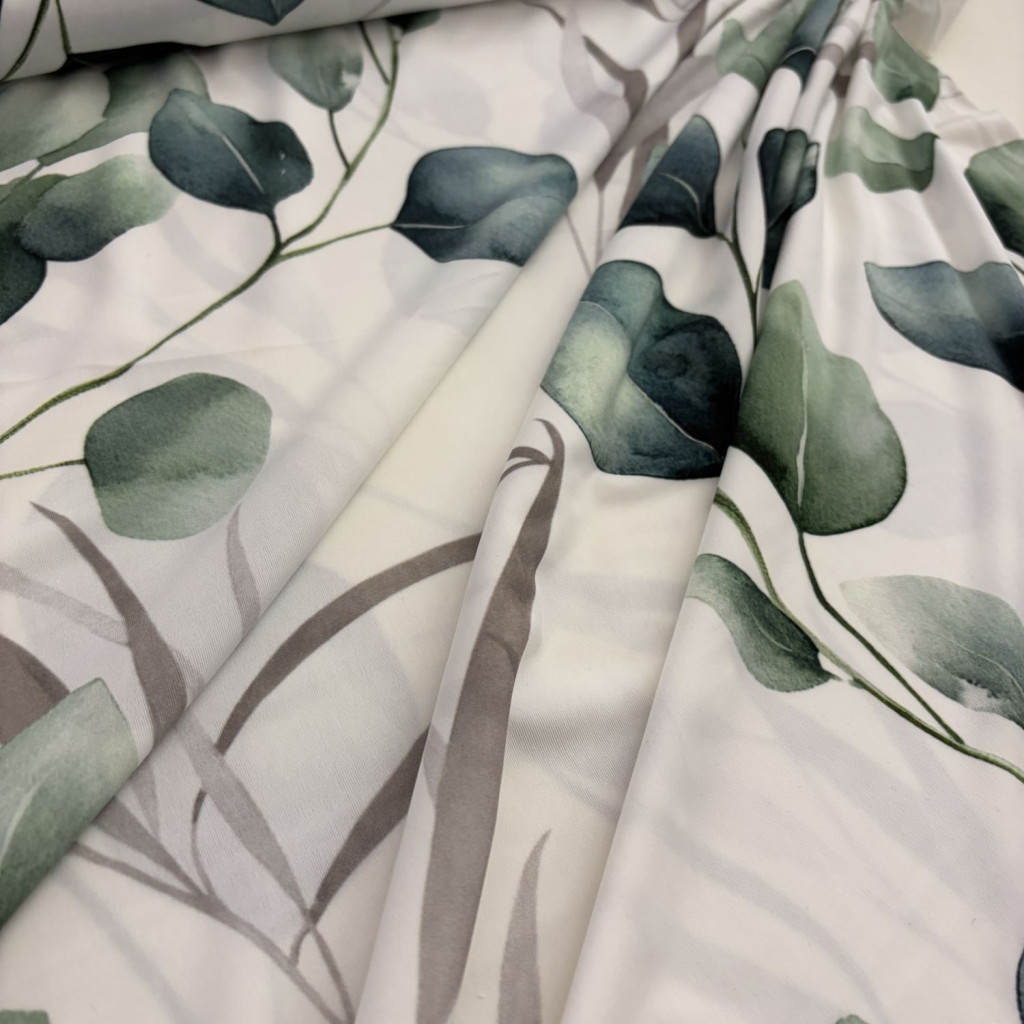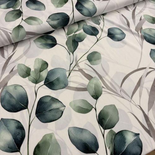 A zöld leveles jégjersey egy igazán különleges ruhaanyag, amely ötvözi a modern textilek praktikumát és a természet ihlette minták frissességét. A levelek játékos mintázata üde, nyárias hangulatot ad, miközben az anyag lágy esésű, rugalmas és hűs tapintású.
