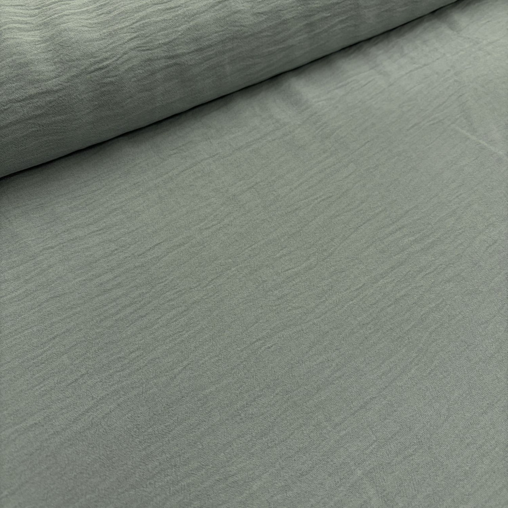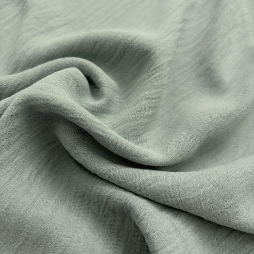 A Zsályazöld American crepe anyag könnyed esésű, enyhén rugalmas és elegáns megjelenésű textil, amely ideális ruházati felhasználásra.