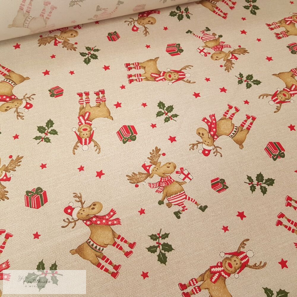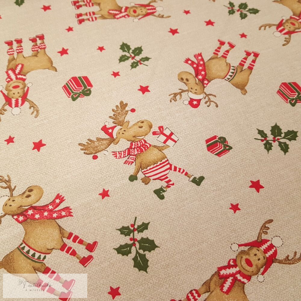 Erős karácsonyi mintás dekorvászon, strapabíró dekorációs textil.